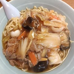 少し待たされて登場。麺がベビースターラーメンみたいに4~5本ほど平べったく合体してるよ。っつーか何コレ、角ふじが細く思えるくらいの超太麺。その上に真っ黒いというか焦げ茶色の怪しい餡が乗っていて、その上にピンク色の苺ミルクみたいなのがかかっていて、その上にタラコのデカイ奴(とびっこ?)が乗ってます。... 続きを見る